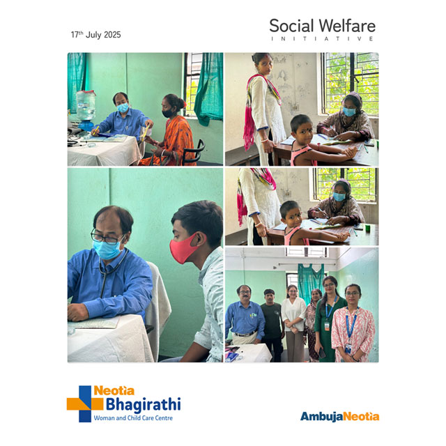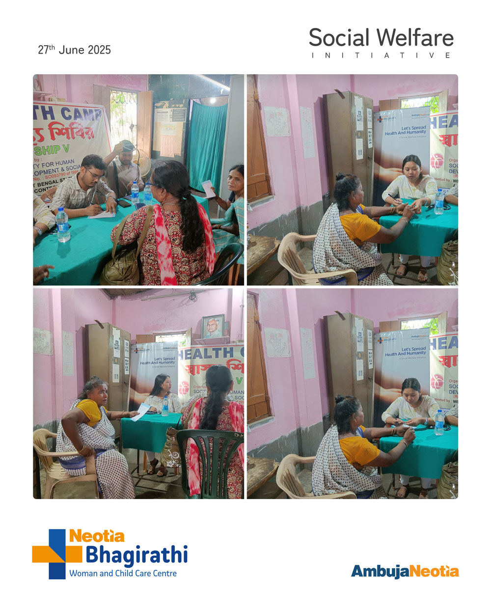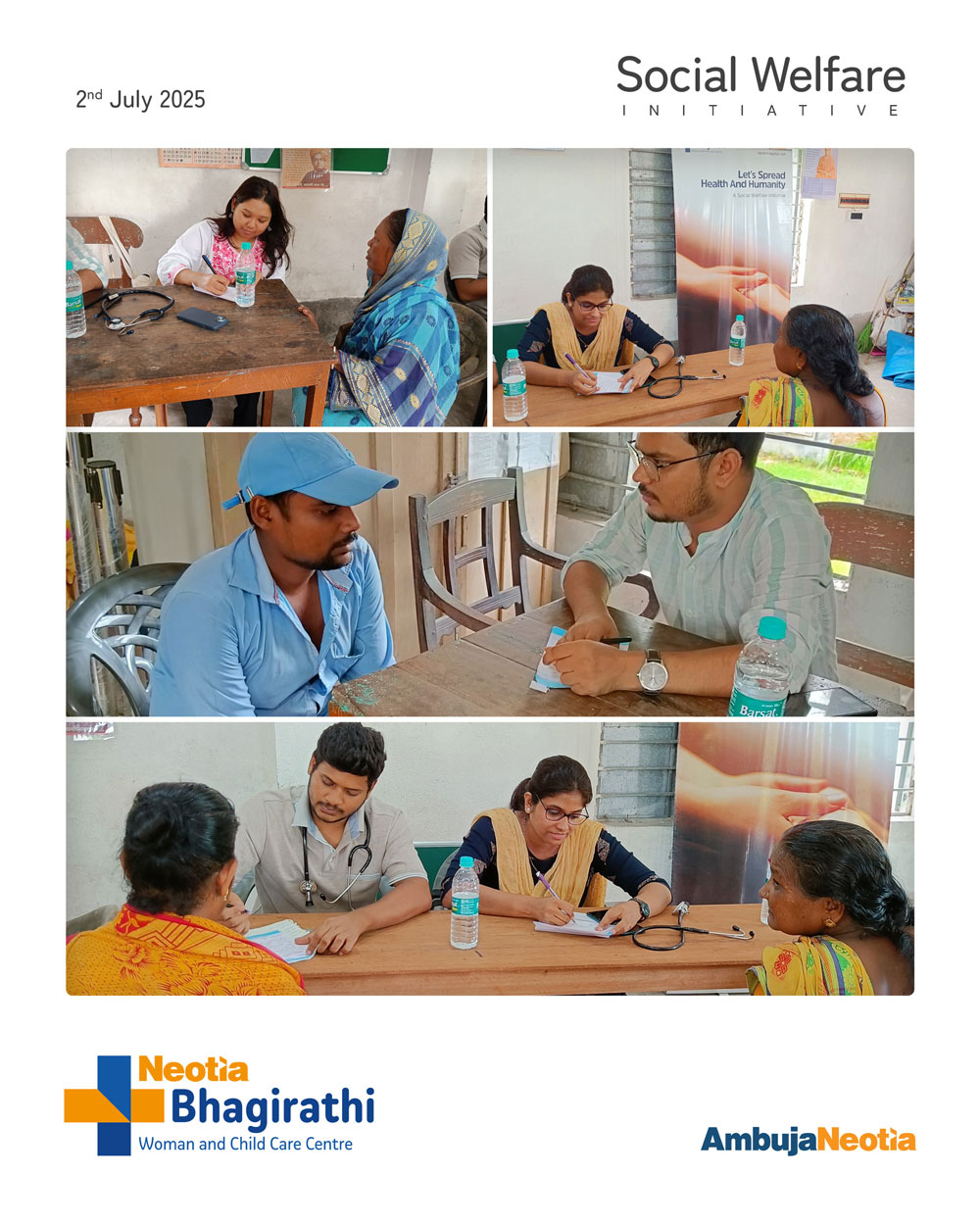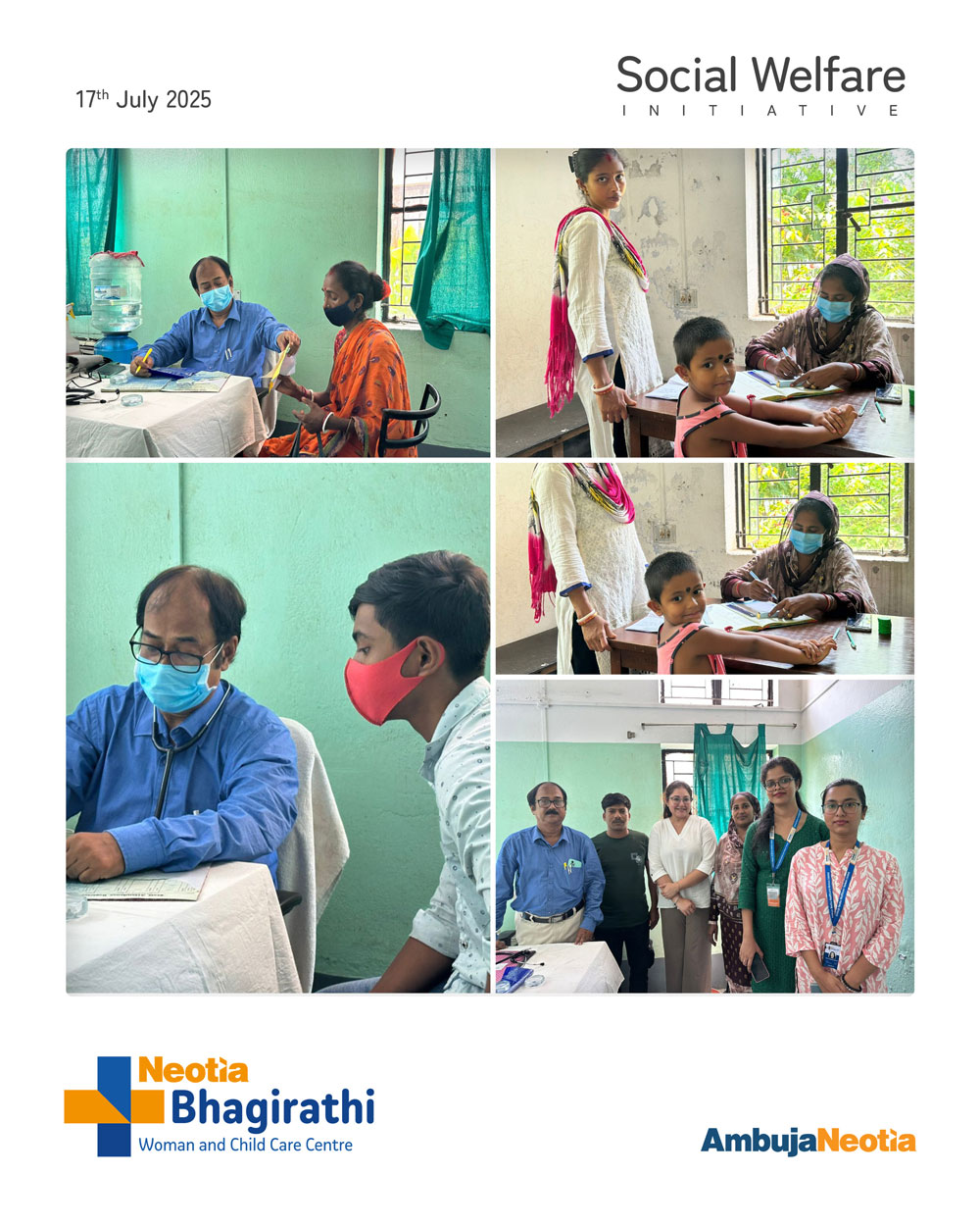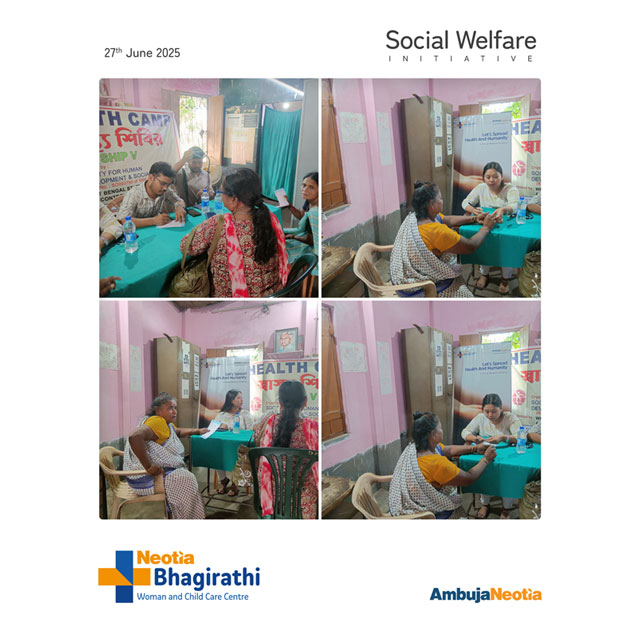 19thJuly, 2025: A General Health Camp was conducted by Neotia Bhagirathi Women and Child Care Centre in collaboration with Swasamman Welfare Foundation. A total of 220 beneficiaries attended the health camp and availed free health checkups and distribution of free medicines. Young women and girls were provided with sanitary napkins as part of this initiative.