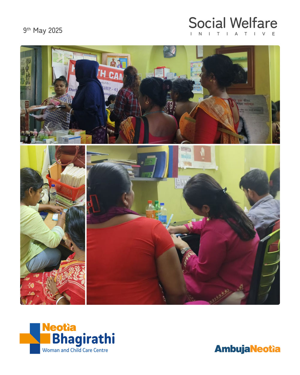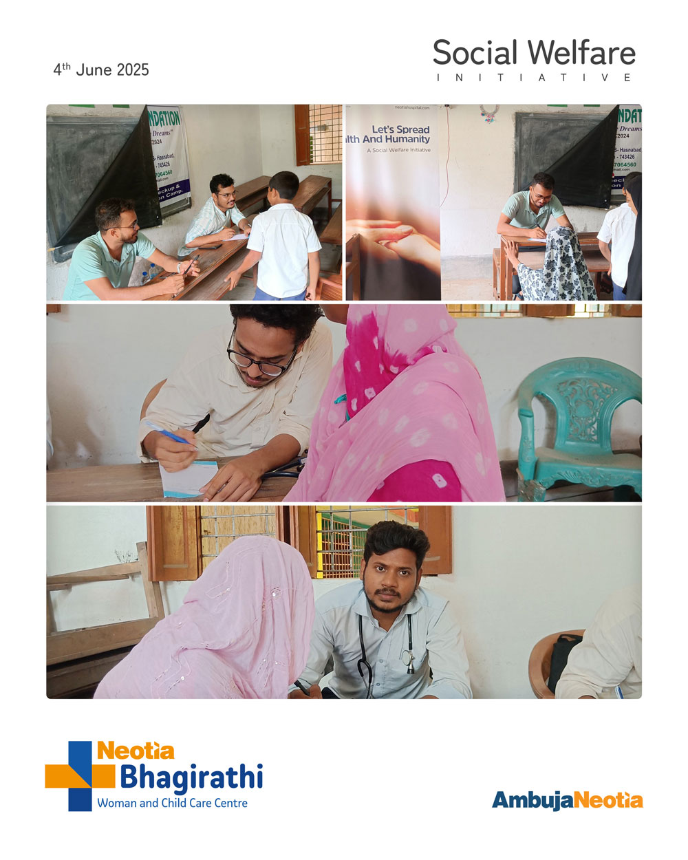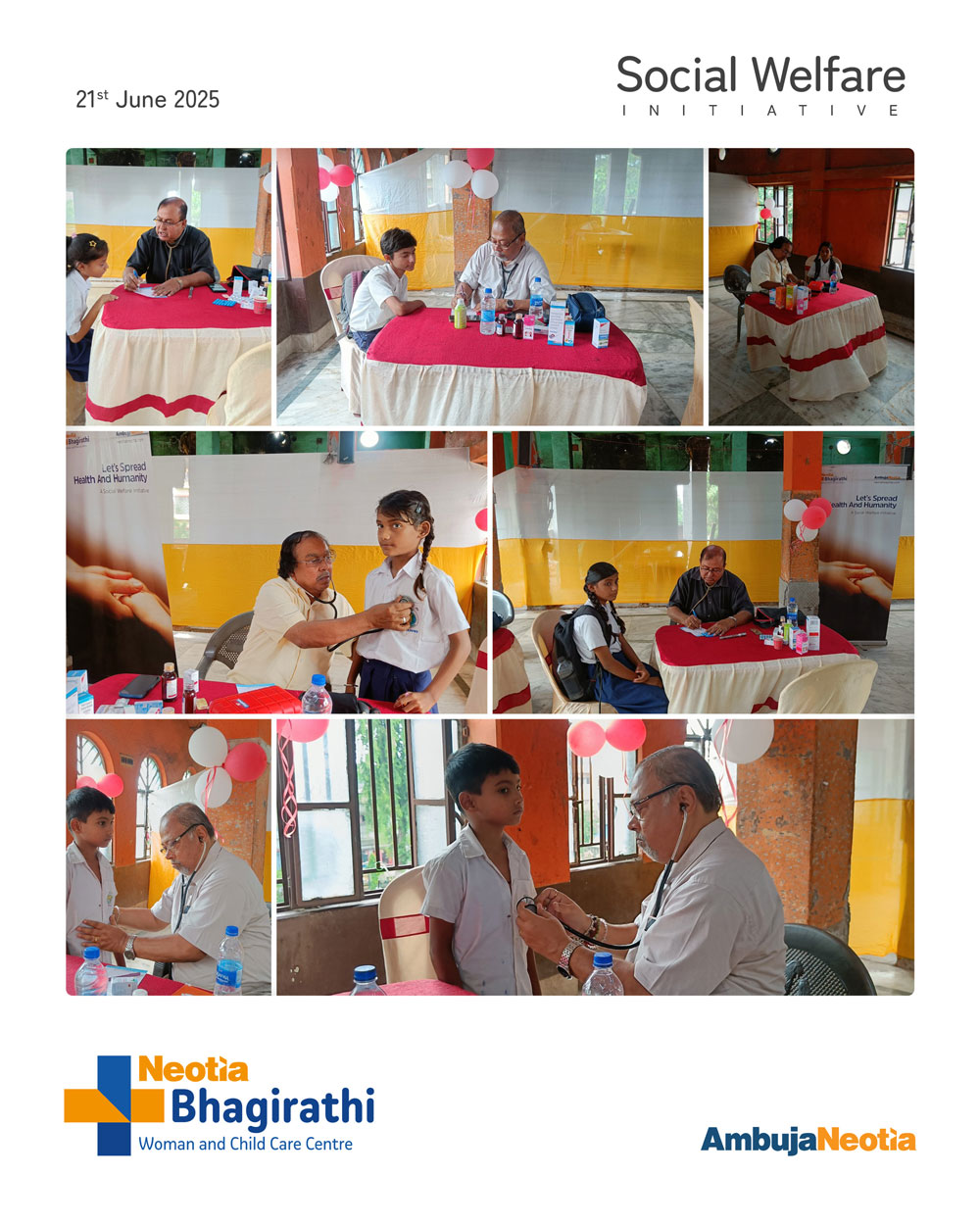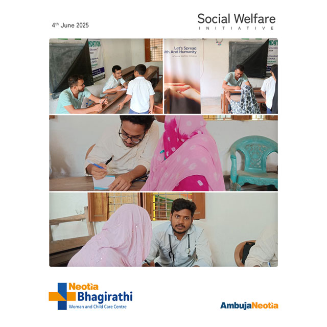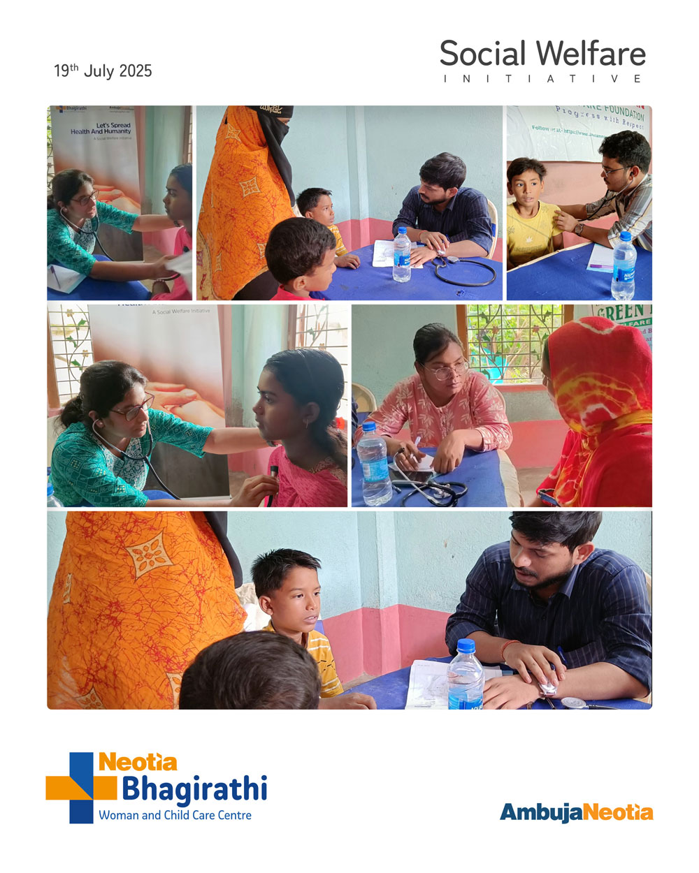 19thJuly, 2025: A General Health Camp was conducted by Neotia Bhagirathi Women and Child Care Centre in collaboration with Swasamman Welfare Foundation. A total of 220 beneficiaries attended the health camp and availed free health checkups and distribution of free medicines. Young women and girls were provided with sanitary napkins as part of this initiative.