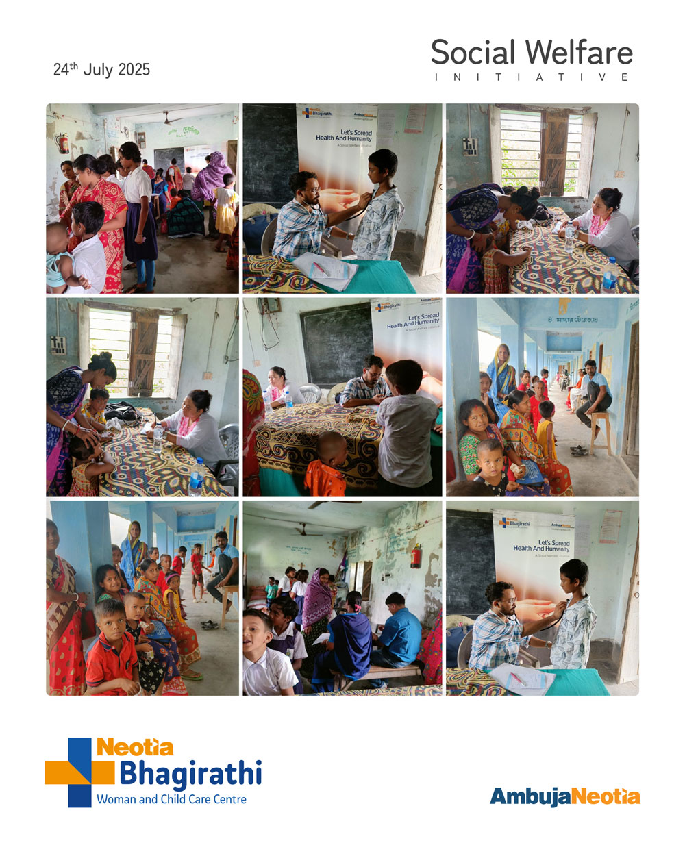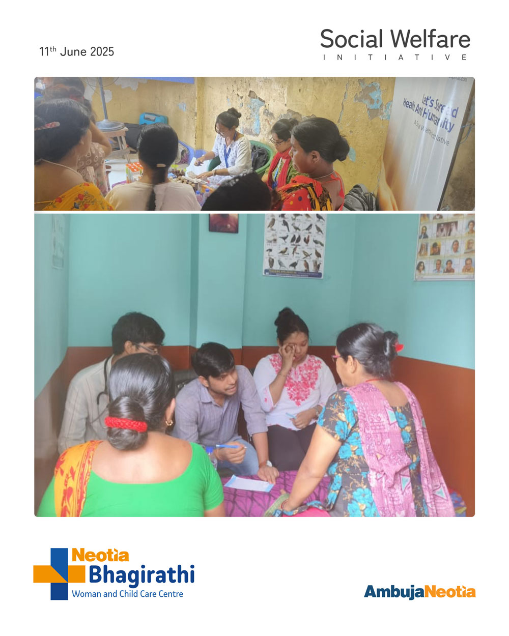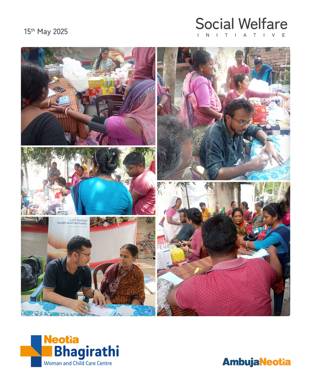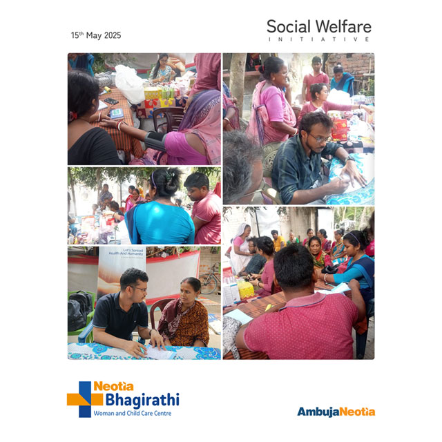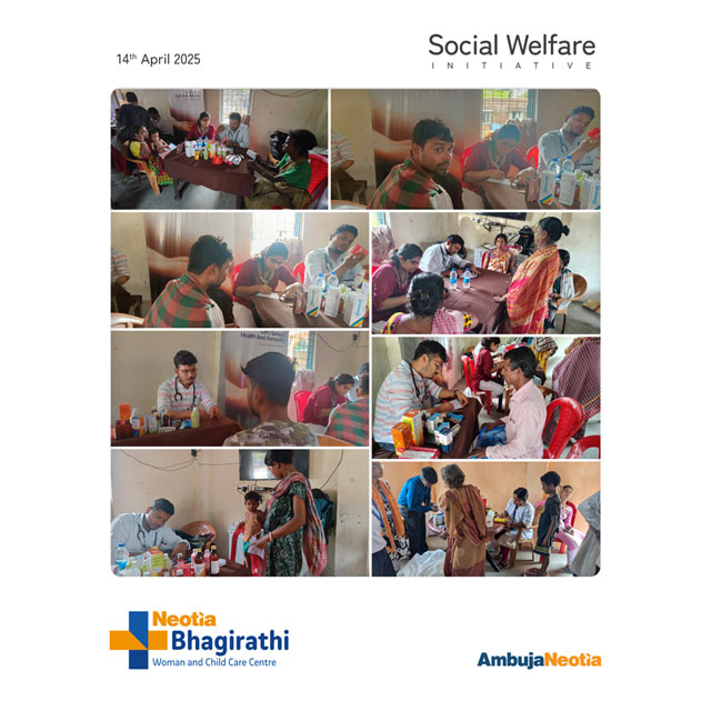 19thJuly, 2025: A General Health Camp was conducted by Neotia Bhagirathi Women and Child Care Centre in collaboration with Swasamman Welfare Foundation. A total of 220 beneficiaries attended the health camp and availed free health checkups and distribution of free medicines. Young women and girls were provided with sanitary napkins as part of this initiative.