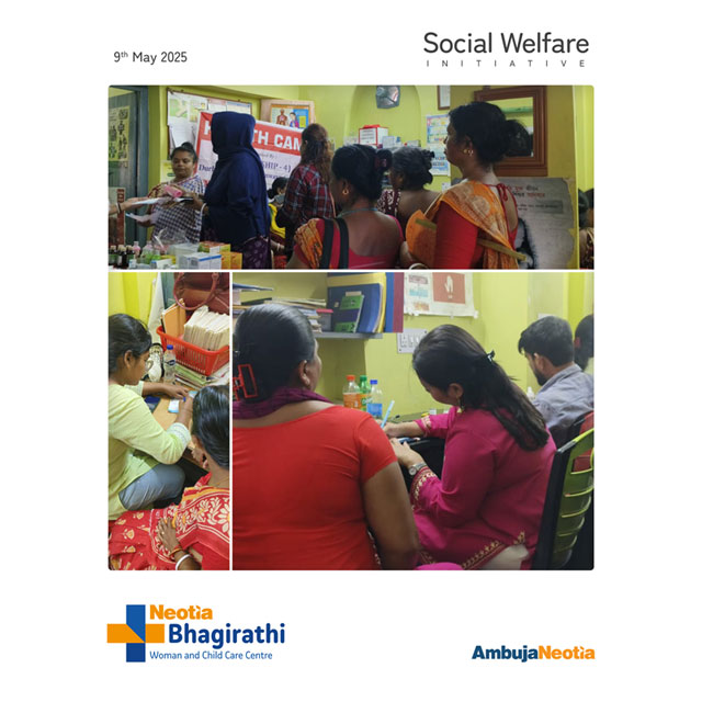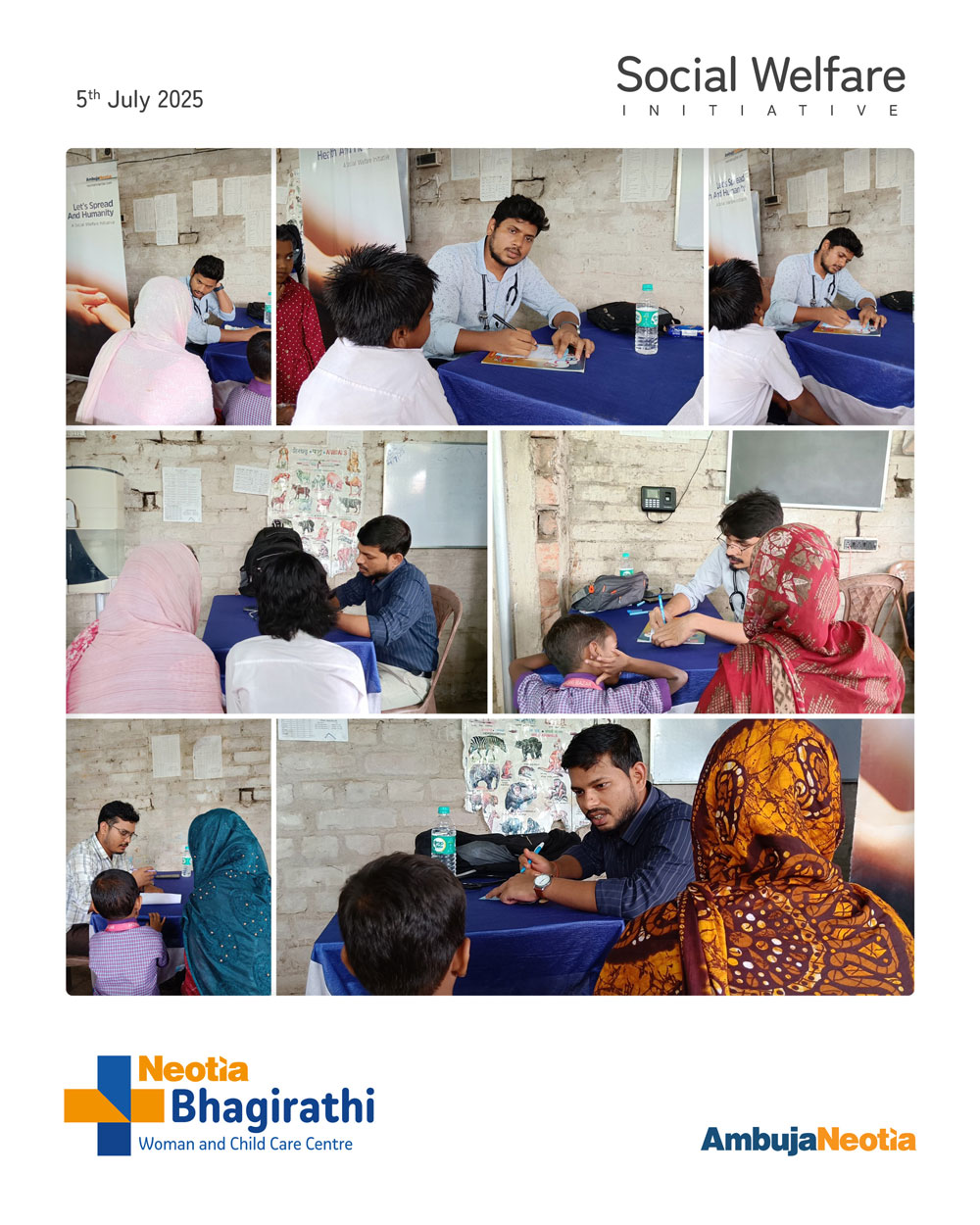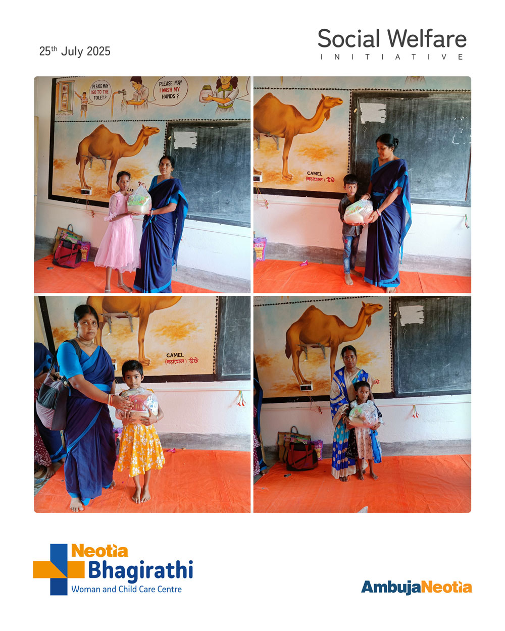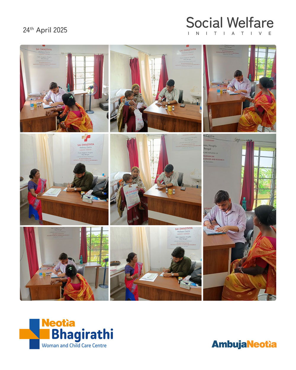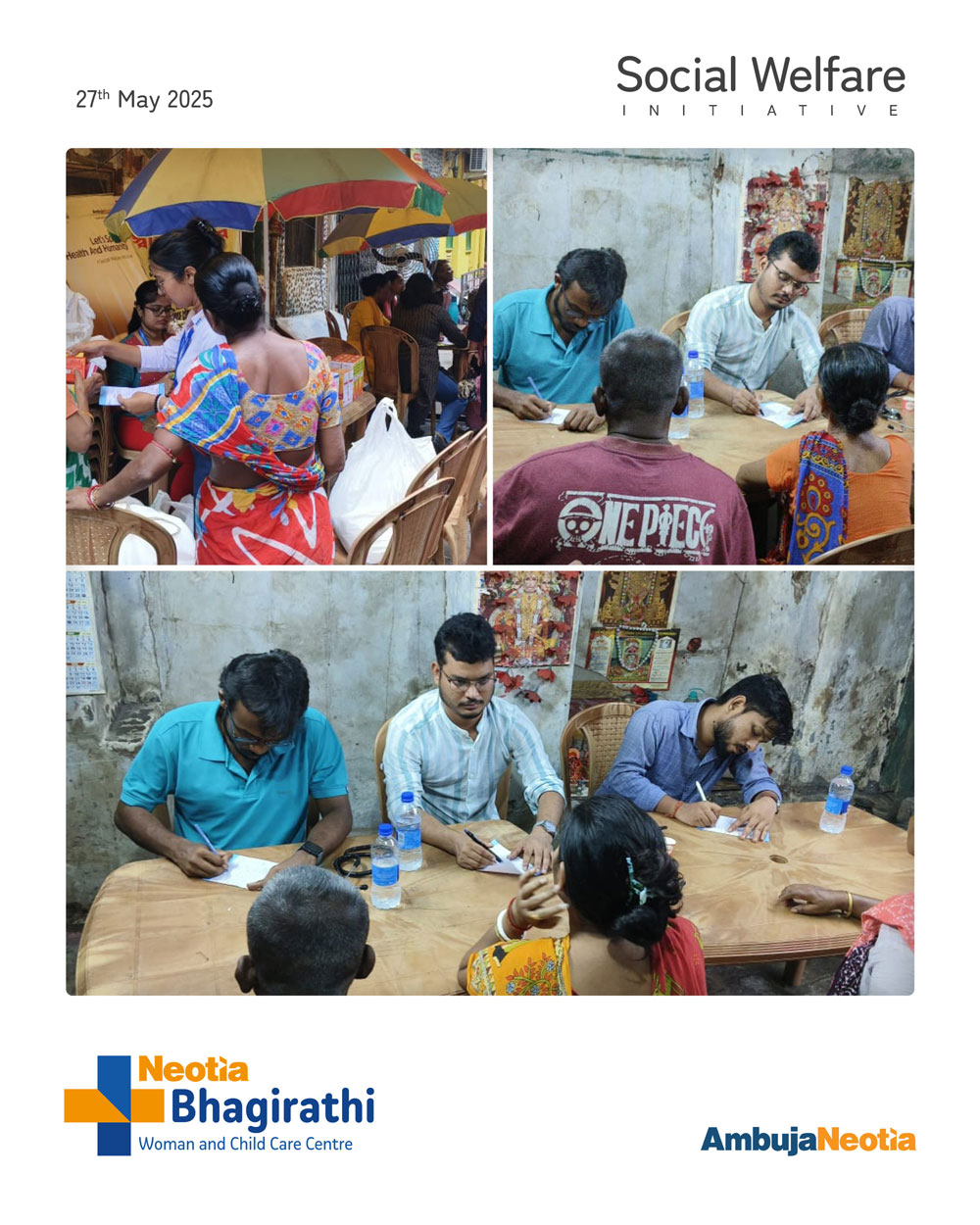 19thJuly, 2025: A General Health Camp was conducted by Neotia Bhagirathi Women and Child Care Centre in collaboration with Swasamman Welfare Foundation. A total of 220 beneficiaries attended the health camp and availed free health checkups and distribution of free medicines. Young women and girls were provided with sanitary napkins as part of this initiative.