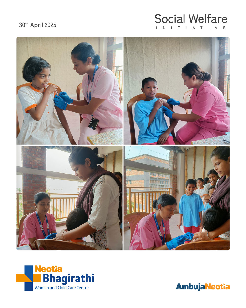 At Neotia Bhagirathi Woman and Child Care Centre, we have devised our CSR initiatives keeping in mind Community Healthcare Programmes for all especially for women and children by organizing health awareness programs, free health check-ups, vaccination drives and offering free OPD services in terms of doctor consultations, medicines & test facilities as well as providing medical care including taking up free surgery cases for underprivileged children. These myriad social healthcare activities that we undertake aims to help to improve the life of the people.