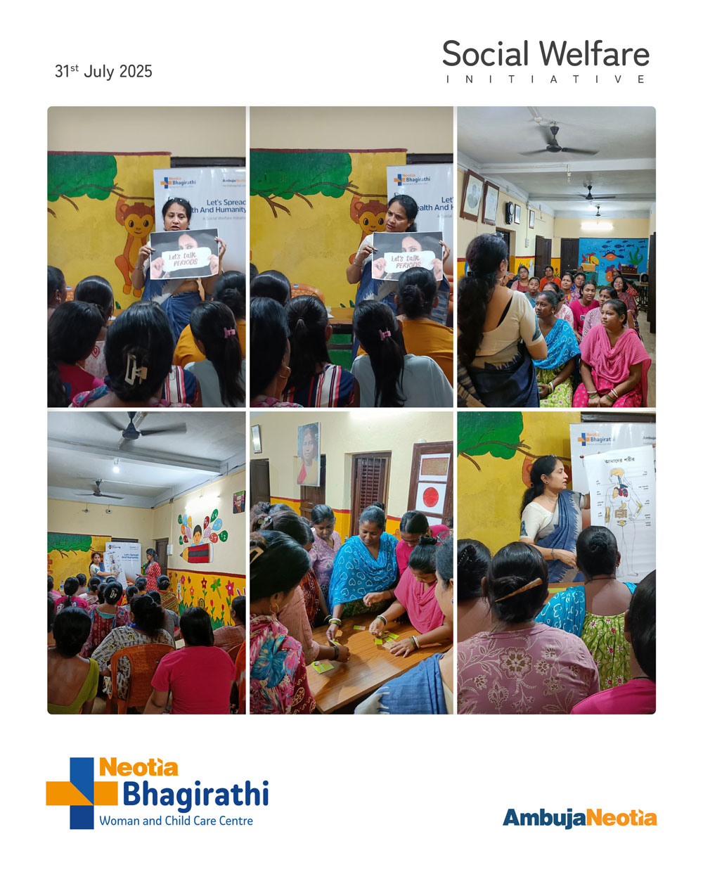 31stJuly, 2025: A Health Awareness Session was conducted by Neotia Bhagirathi Women and Child Care Centre in collaboration with AIM Foundation, targeting women residing in urban slum areas. Held in Bosepukur, the session aimed at informing these women about vital health issues concerning female anatomy and maintaining personal hygiene.