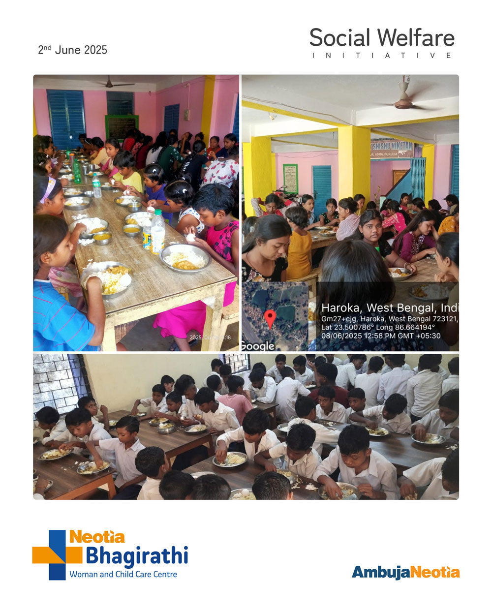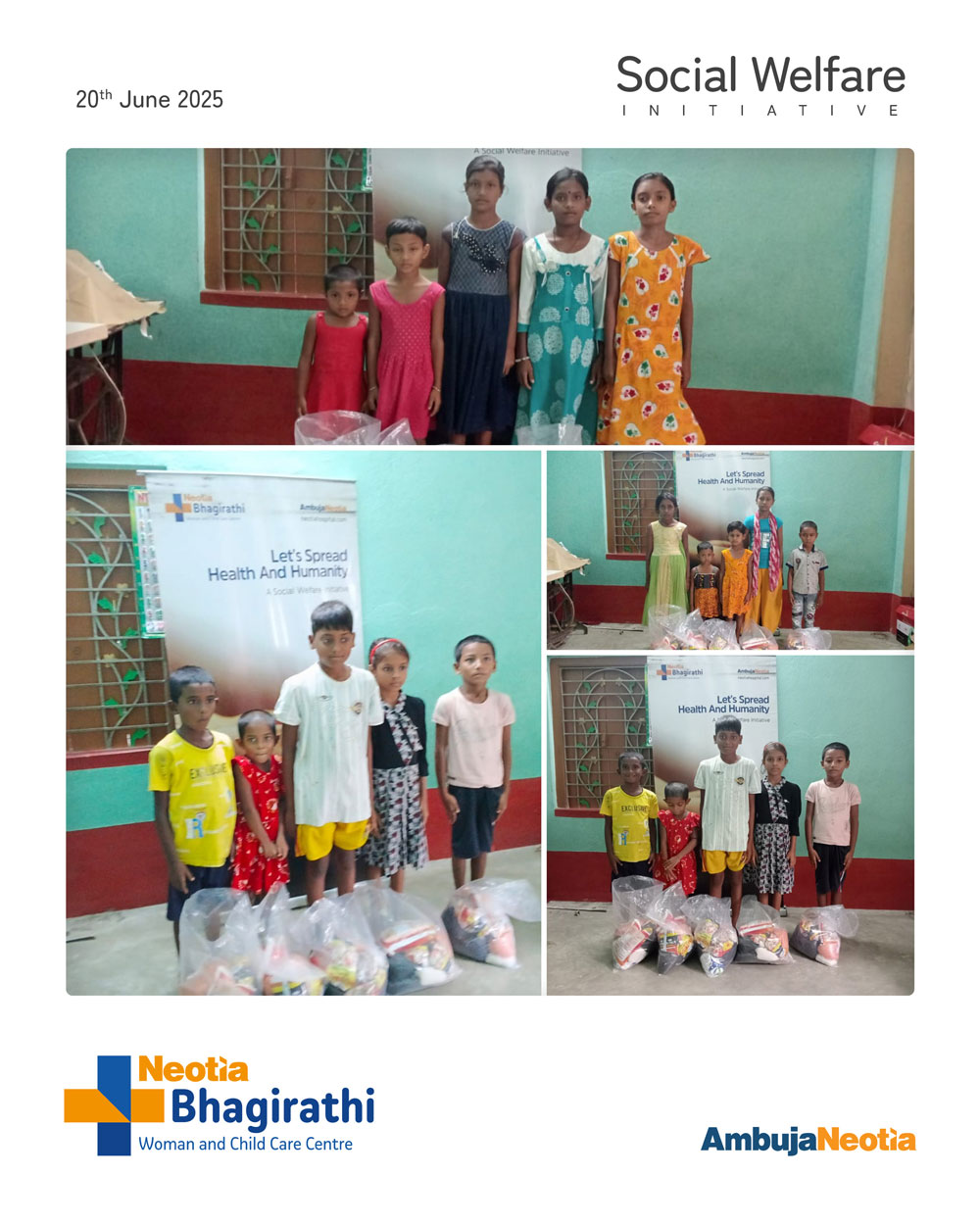 2ndJune, 2025: In a compassionate initiative aimed at promoting the health and well-being of underprivileged children, dry rations and protein supplements were distributed to 150 boys and girls residing in Leprosy Mission Home in Adra. The event was organized by Neotia Bhagirathi Women and Child Care Centre, in collaboration with Swasamman Welfare Foundation.